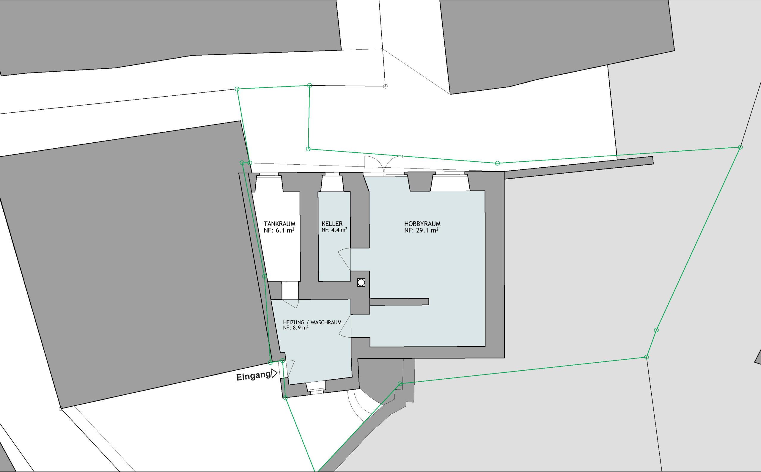 Separater Eingang mit Garderobe.