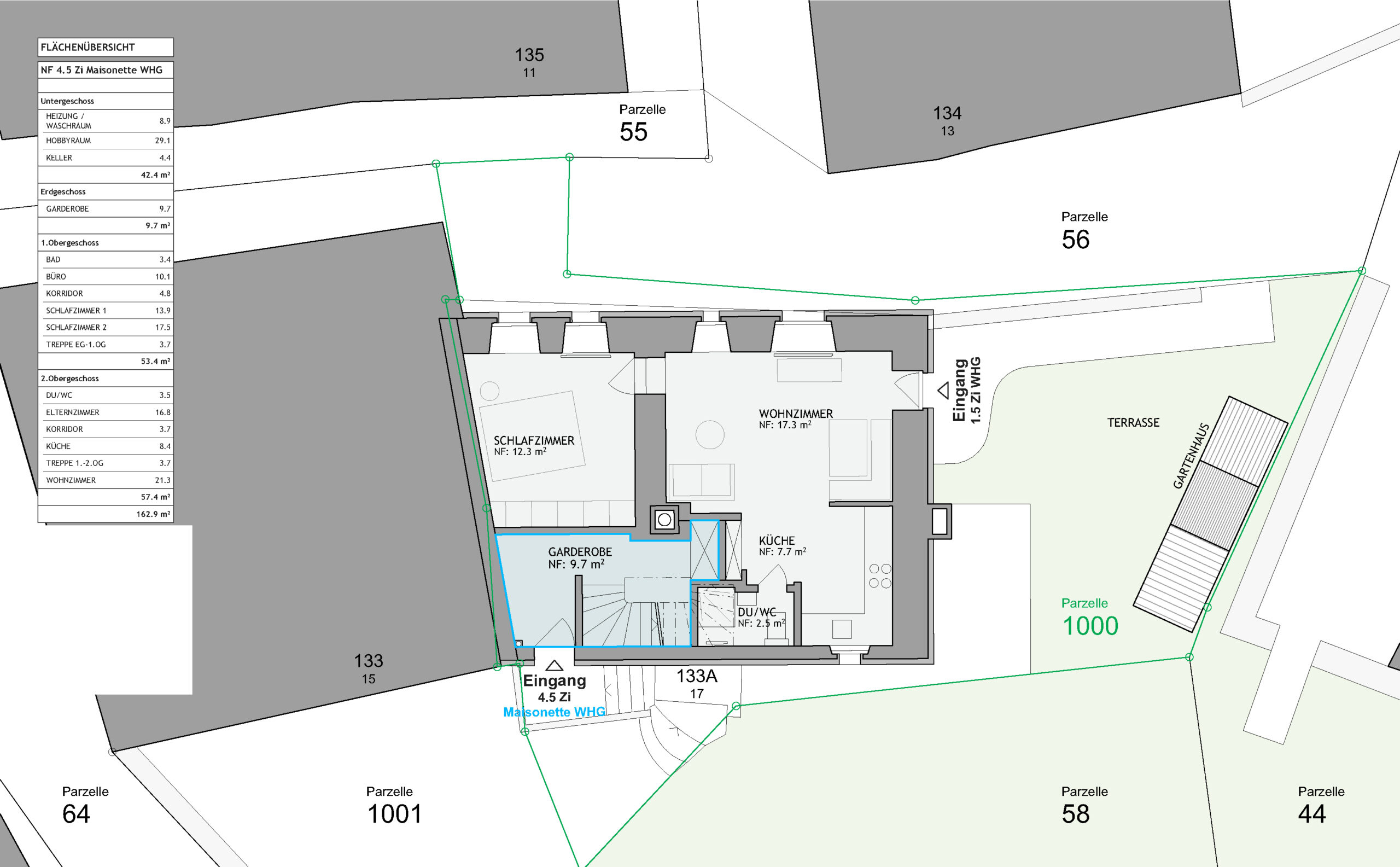Mit einer netto Wohnfläche von ca.130 m2, zuzüglich grosszügigem Disponibel im Sousterrain Geschoss. Eigener Eingang und eigene Waschgelegenheit sowie Garten zur Mitbenutzung.